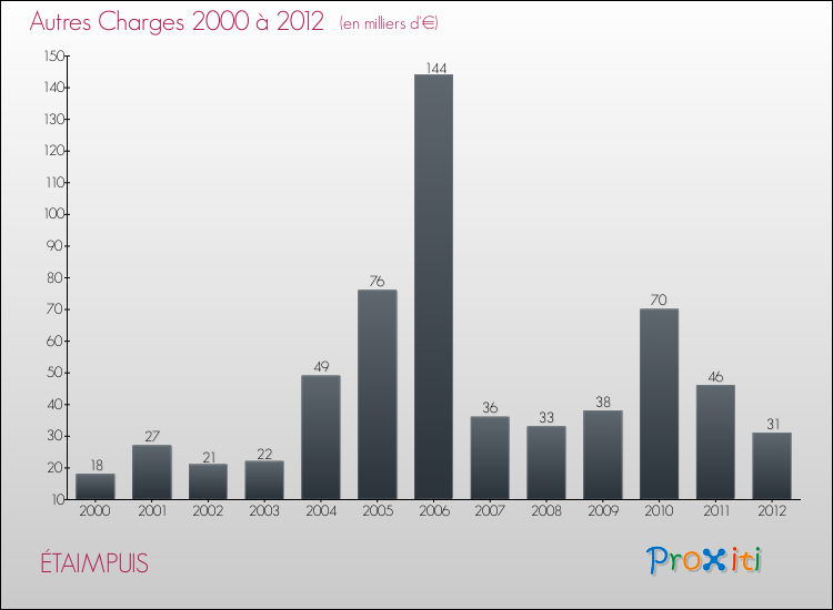 En 2012, les charges de fonctionnement de la commune de Étaimpuis étaient de : 318 000 € décomposées comme suit :