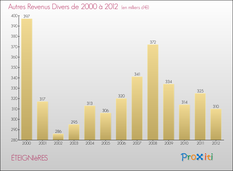En 2012, les charges de fonctionnement de la commune de Éteignières étaient de : 347 000 € décomposées comme suit :