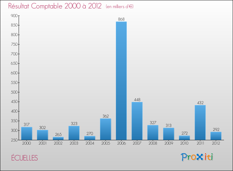Le résultat comptable de la commune de Écuelles s'établissait ainsi à : + 292 000 € fin 2012.