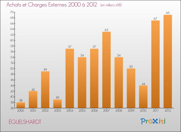 En 2012, les charges de fonctionnement de la commune de Éguelshardt étaient de : 216 000 € décomposées comme suit :