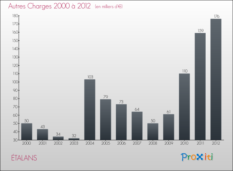 En 2012, les charges de fonctionnement de la commune de Étalans étaient de : 787 000 € décomposées comme suit :
