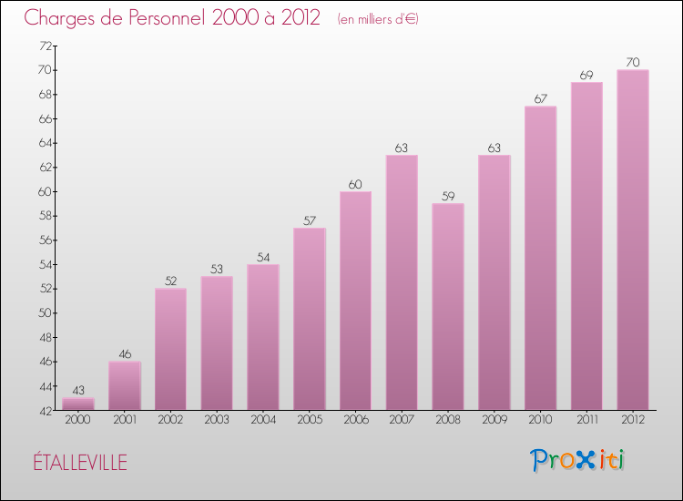 Le résultat comptable de la commune de Étalleville s'établissait ainsi à : + 22 000 € fin 2012.