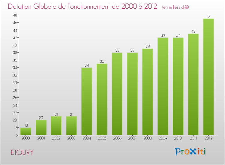 Le résultat comptable de la commune de Étouvy s'établissait ainsi à : + 32 000 € fin 2012.