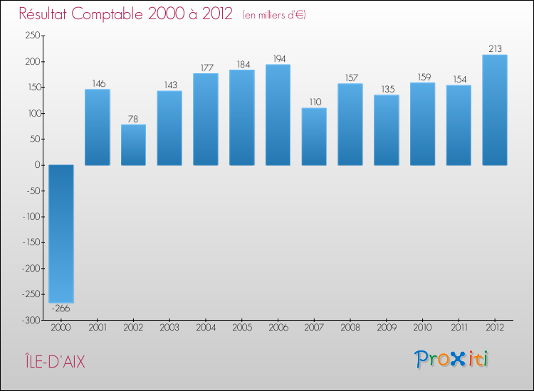 Le résultat comptable de la commune de Île-d'Aix s'établissait ainsi à : + 213 000 € fin 2012.