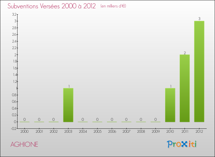 En 2012, le budget de fonctionnement de la commune de Aghione se montait à : 280 000 € décomposé comme suit :