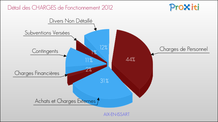 En 2012, les charges de fonctionnement de la commune de Aix-en-Issart étaient de : 124 000 € décomposées comme suit :