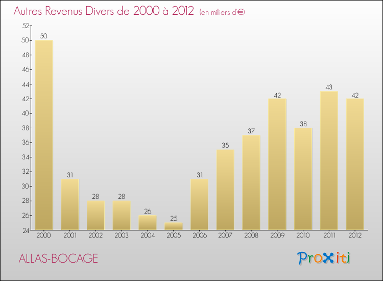 Le résultat comptable de la commune de Allas-Bocage s'établissait ainsi à : + 25 000 € fin 2012.