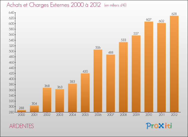 En 2012, les charges de fonctionnement de la commune de Ardentes étaient de : 2 515 000 € décomposées comme suit :