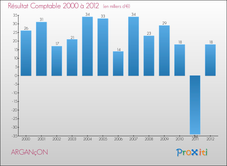 Le résultat comptable de la commune de Argançon s'établissait ainsi à : + 18 000 € fin 2012.