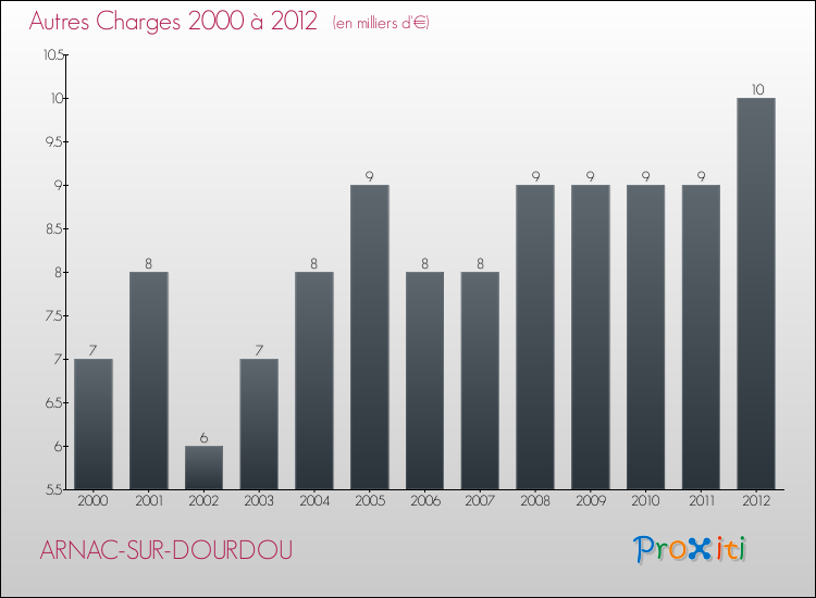 En 2012, les charges de fonctionnement de la commune de Arnac-sur-Dourdou étaient de : 40 000 € décomposées comme suit :