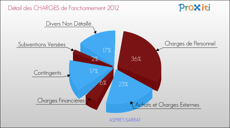 En 2012, les charges de fonctionnement de la commune de Aspret-Sarrat étaient de : 53 000 € décomposées comme suit :