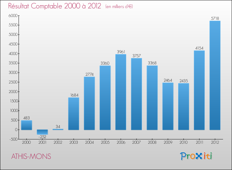 Le résultat comptable de la commune de Athis-Mons s'établissait ainsi à : + 5 718 000 € fin 2012.