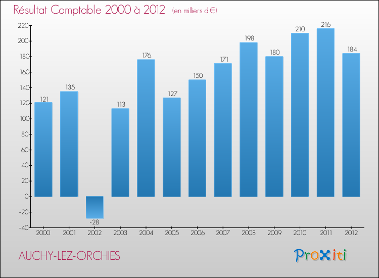 Le résultat comptable de la commune de Auchy-lez-Orchies s'établissait ainsi à : + 184 000 € fin 2012.