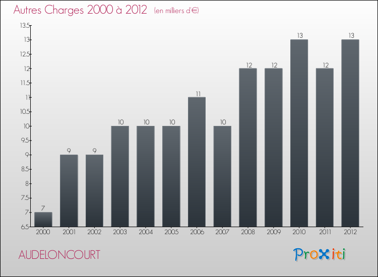 En 2012, les charges de fonctionnement de la commune de Audeloncourt étaient de : 66 000 € décomposées comme suit :