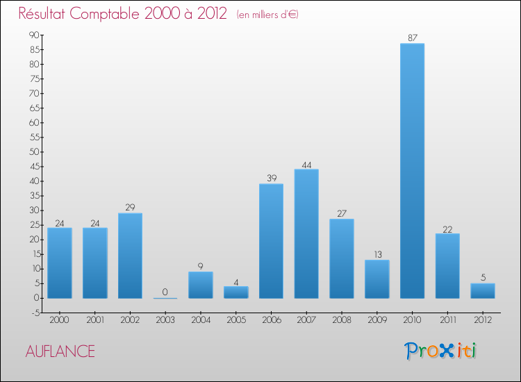 Le résultat comptable de la commune de Auflance s'établissait ainsi à : + 5 000 € fin 2012.
