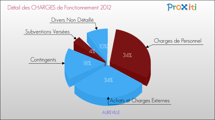 En 2012, les charges de fonctionnement de la commune de Aureville étaient de : 319 000 € décomposées comme suit :