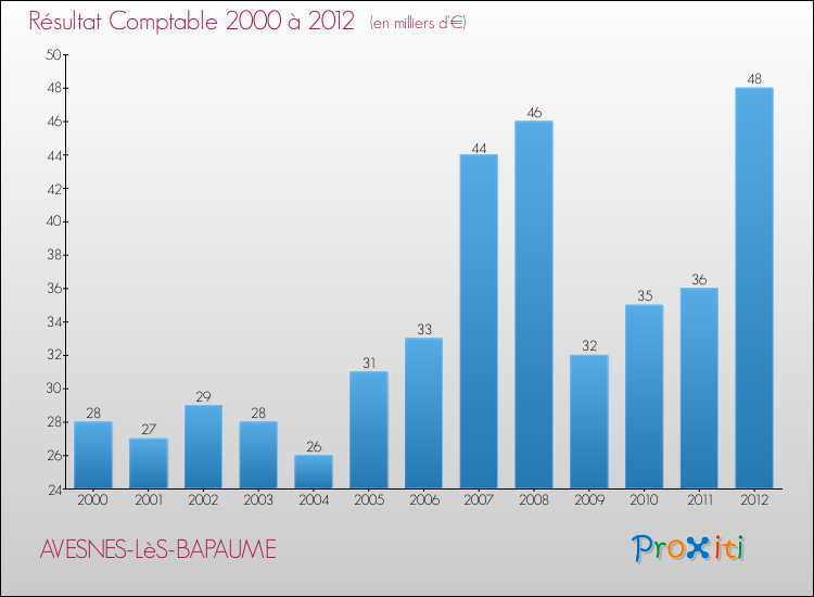 Le résultat comptable de la commune de Avesnes-lès-Bapaume s'établissait ainsi à : + 48 000 € fin 2012.