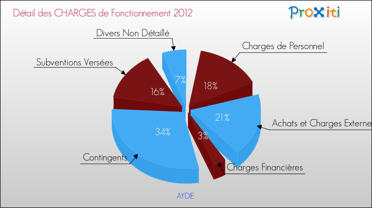 En 2012, les charges de fonctionnement de la commune de Aydie étaient de : 61 000 € décomposées comme suit :