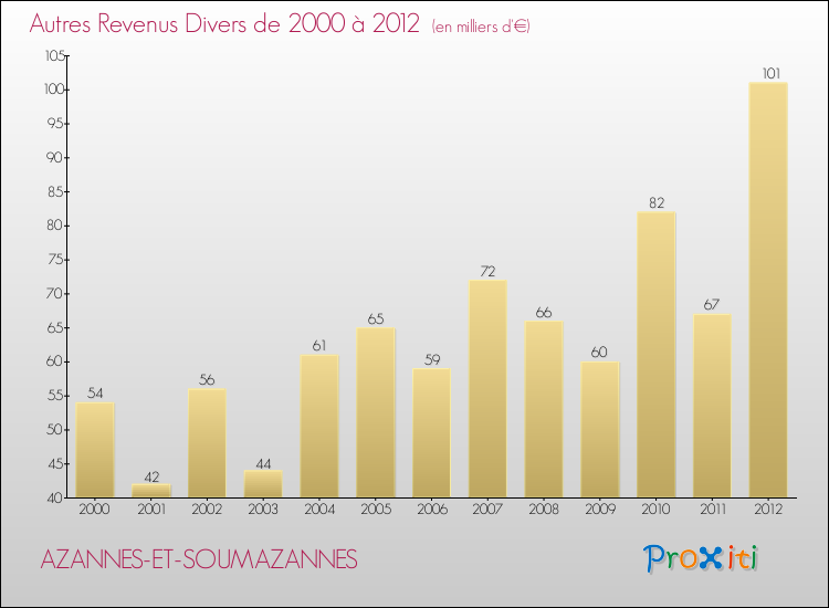 Le résultat comptable de la commune de Azannes-et-Soumazannes s'établissait ainsi à : + 53 000 € fin 2012.