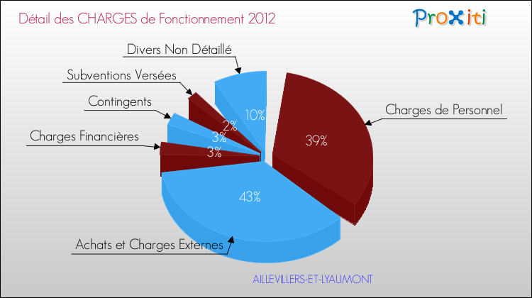En 2012, les charges de fonctionnement de la commune de Aillevillers-et-Lyaumont étaient de : 803 000 € décomposées comme suit :