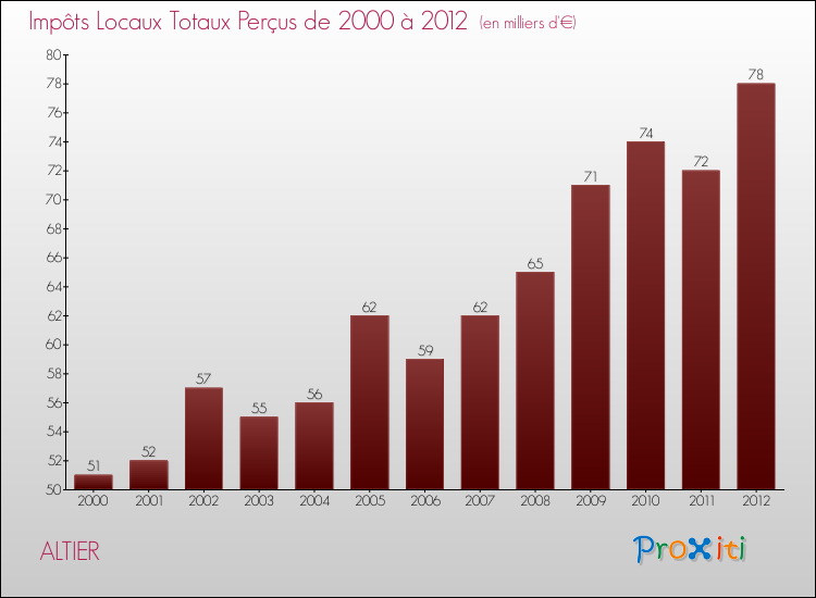Le résultat comptable de la commune de Altier s'établissait ainsi à : + 80 000 € fin 2012.