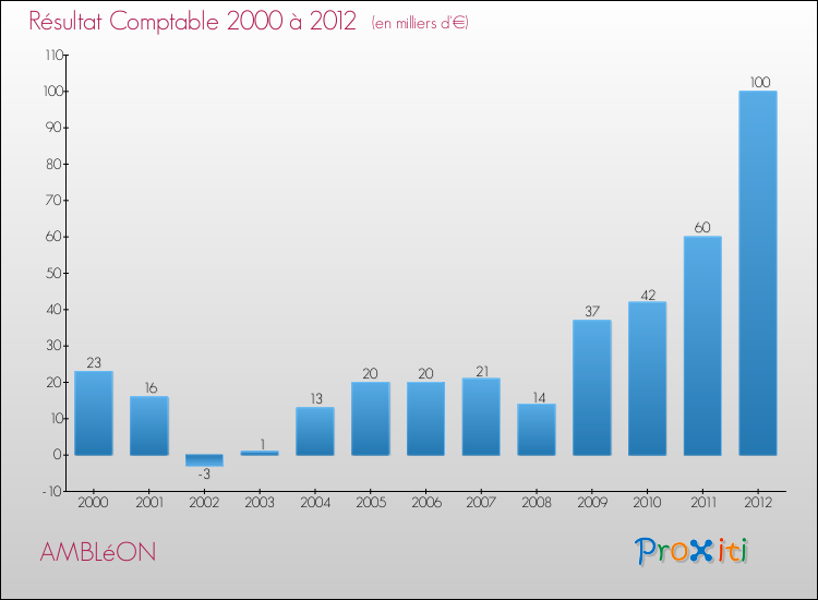 Le résultat comptable de la commune de Ambléon s'établissait ainsi à : + 100 000 € fin 2012.