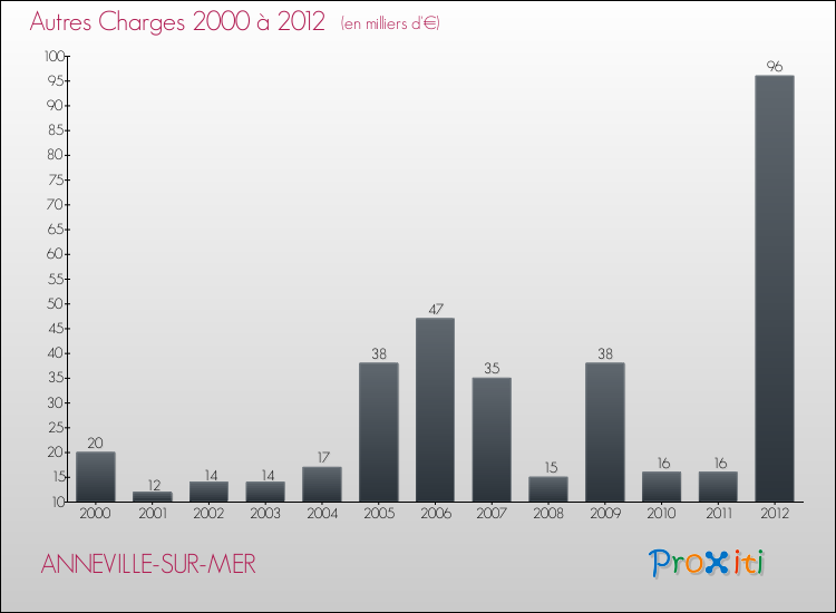 En 2012, les charges de fonctionnement de la commune de Anneville-sur-Mer étaient de : 149 000 € décomposées comme suit :