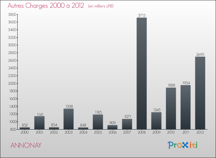 En 2012, les charges de fonctionnement de la commune de Annonay étaient de : 21 284 000 € décomposées comme suit :