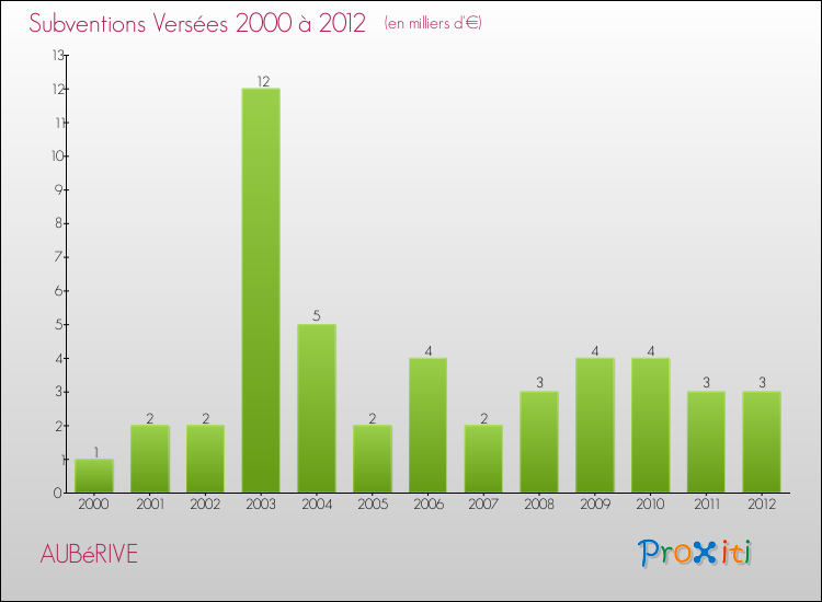 Le résultat comptable de la commune de Aubérive s'établissait ainsi à : + 47 000 € fin 2012.