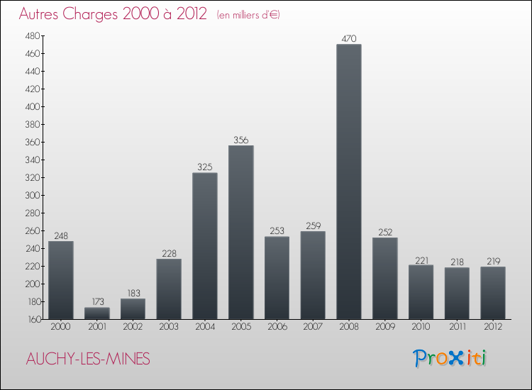 En 2012, les charges de fonctionnement de la commune de Auchy-les-Mines étaient de : 3 457 000 € décomposées comme suit :