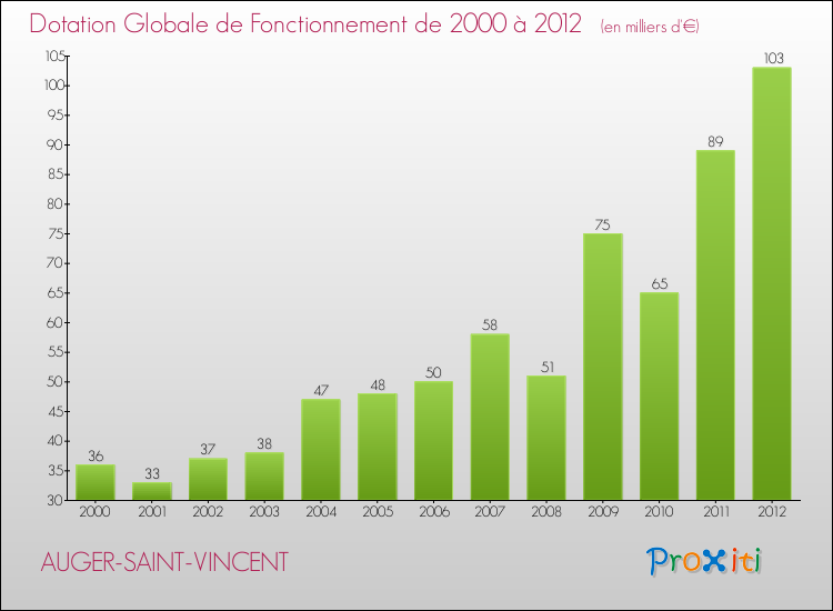 En 2012, le budget de fonctionnement de la commune de Auger-Saint-Vincent se montait à : 351 000 € décomposé comme suit :