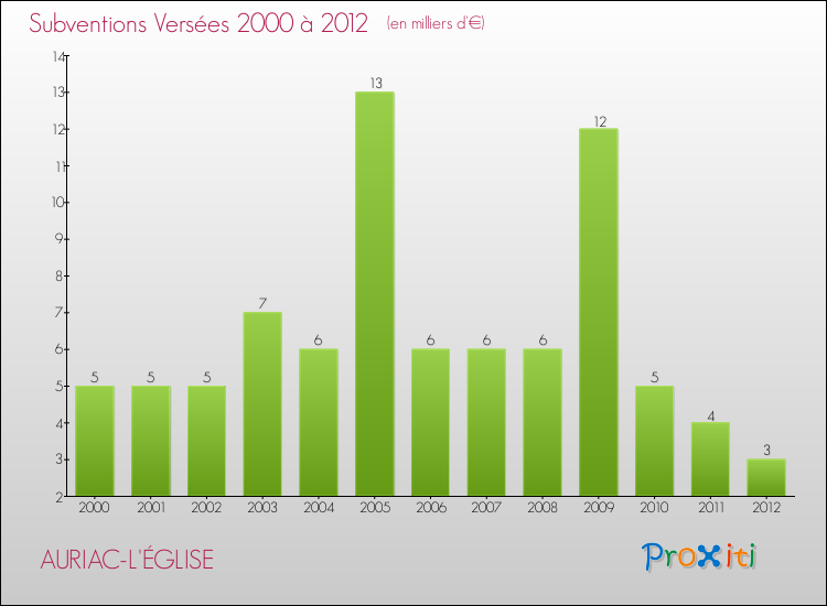 Le résultat comptable de la commune de Auriac-l'Église s'établissait ainsi à : + 73 000 € fin 2012.