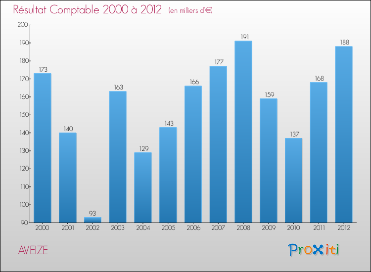 Le résultat comptable de la commune de Aveize s'établissait ainsi à : + 188 000 € fin 2012.
