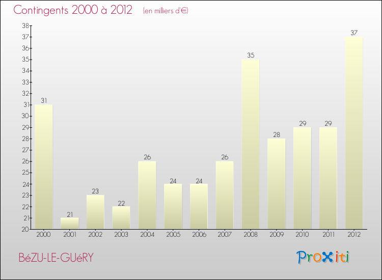 En 2012, les charges de fonctionnement de la commune de Bézu-le-Guéry étaient de : 76 000 € décomposées comme suit :
