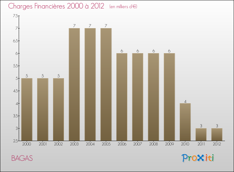 En 2012, le budget de fonctionnement de la commune de Bagas se montait à : 164 000 € décomposé comme suit :