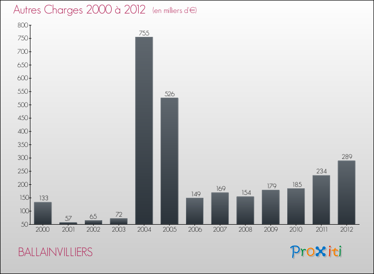 En 2012, les charges de fonctionnement de la commune de Ballainvilliers étaient de : 4 465 000 € décomposées comme suit :