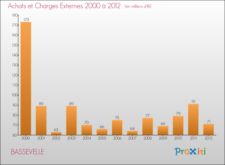 En 2012, les charges de fonctionnement de la commune de Bassevelle étaient de : 170 000 € décomposées comme suit :