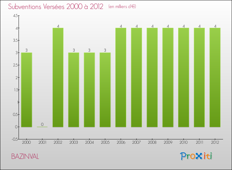 Le résultat comptable de la commune de Bazinval s'établissait ainsi à : -1 000 € fin 2012 (recettes-dépenses).