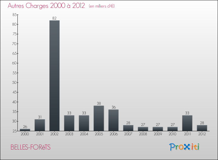 En 2012, les charges de fonctionnement de la commune de Belles-Forêts étaient de : 152 000 € décomposées comme suit :