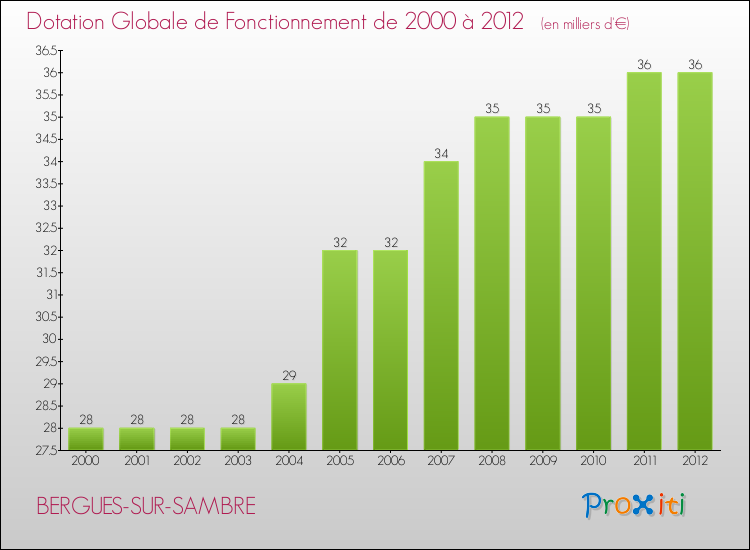 En 2012, les charges de fonctionnement de la commune de Bergues-sur-Sambre étaient de : 82 000 € décomposées comme suit :