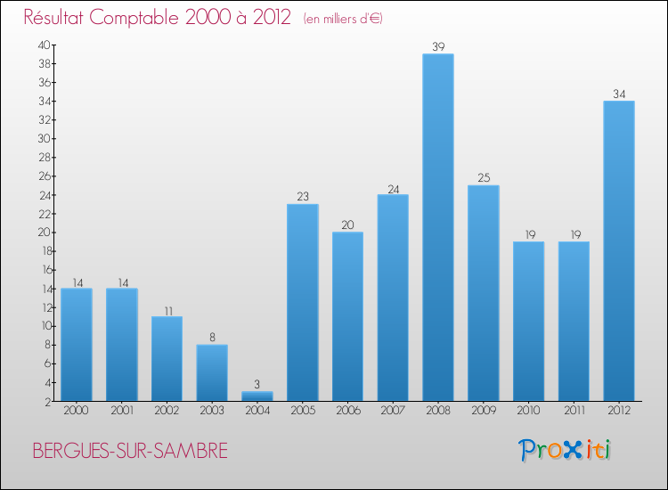 Le résultat comptable de la commune de Bergues-sur-Sambre s'établissait ainsi à : + 34 000 € fin 2012.