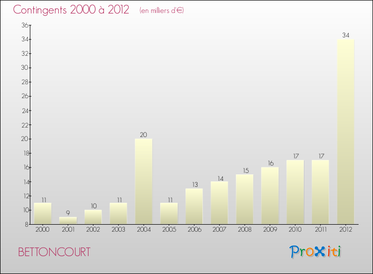 Le résultat comptable de la commune de Bettoncourt s'établissait ainsi à : -10 000 € fin 2012 (recettes-dépenses).