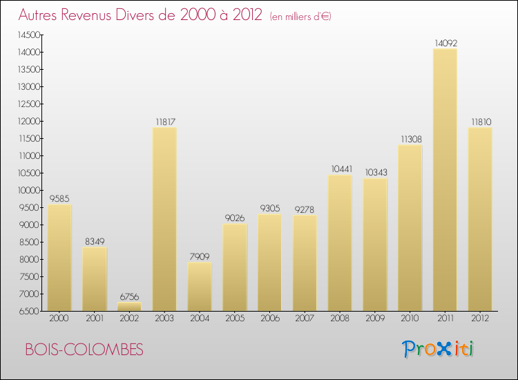 En 2012, le budget de fonctionnement de la commune de Bois-Colombes se montait à : 49 283 000 € décomposé comme suit :