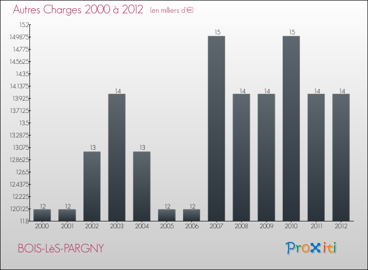 En 2012, les charges de fonctionnement de la commune de Bois-lès-Pargny étaient de : 94 000 € décomposées comme suit :