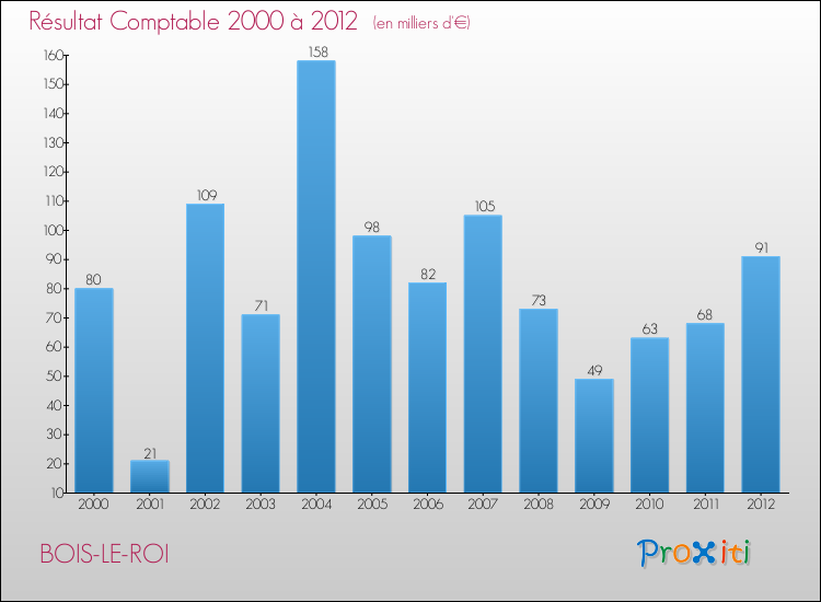 Le résultat comptable de la commune de Bois-le-Roi s'établissait ainsi à : + 91 000 € fin 2012.