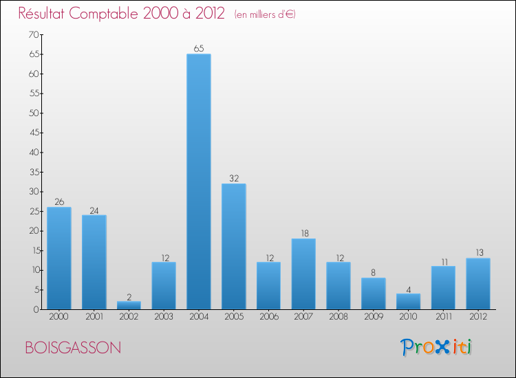 Le résultat comptable de la commune de Boisgasson s'établissait ainsi à : + 13 000 € fin 2012.