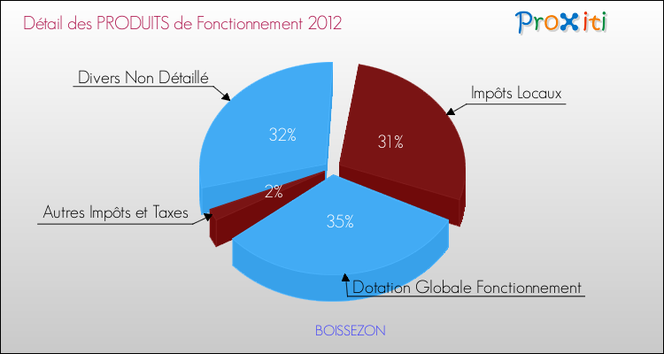 En 2012, le budget de fonctionnement de la commune de Boissezon se montait à : 385 000 € décomposé comme suit :