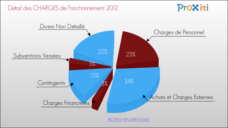 En 2012, les charges de fonctionnement de la commune de Boissy-en-Drouais étaient de : 73 000 € décomposées comme suit :