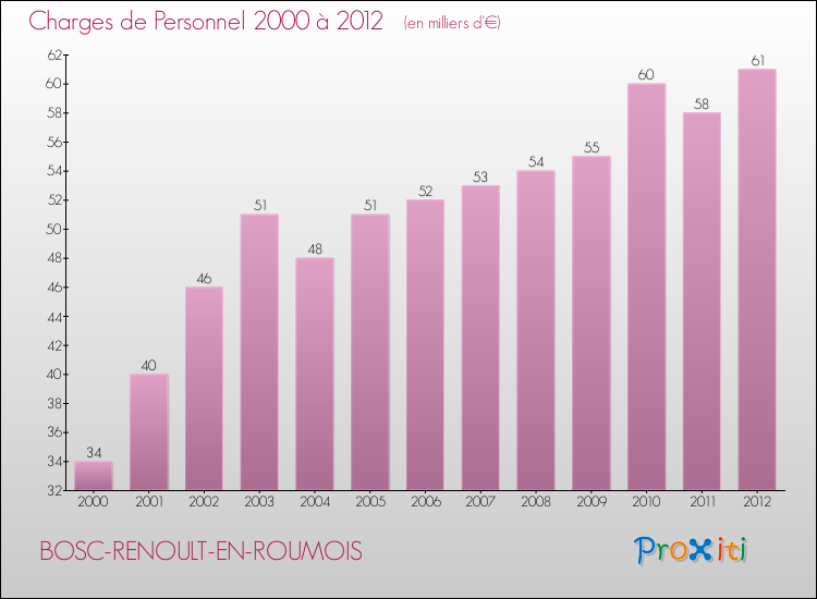 - Charges de Personnel (principalement pour payer les employés municipaux) : 61 000 €