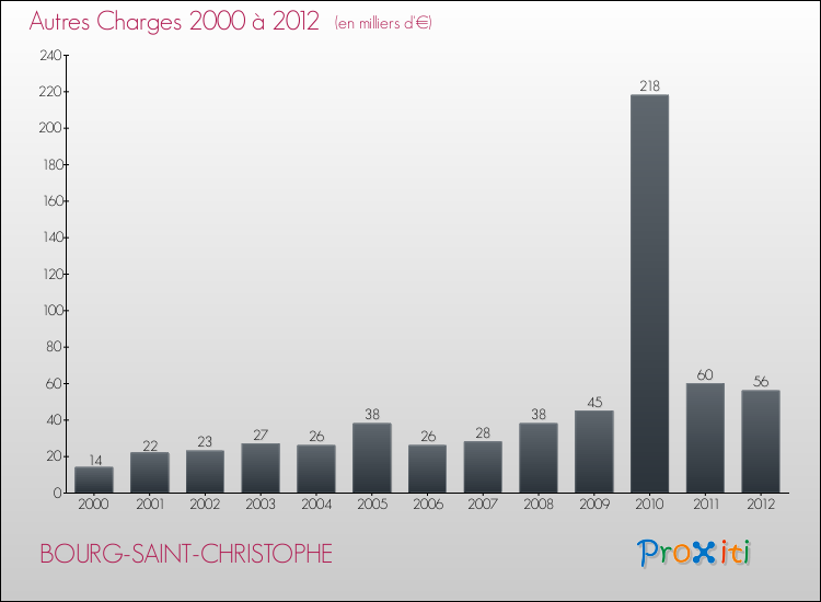 En 2012, les charges de fonctionnement de la commune de Bourg-Saint-Christophe étaient de : 415 000 € décomposées comme suit :